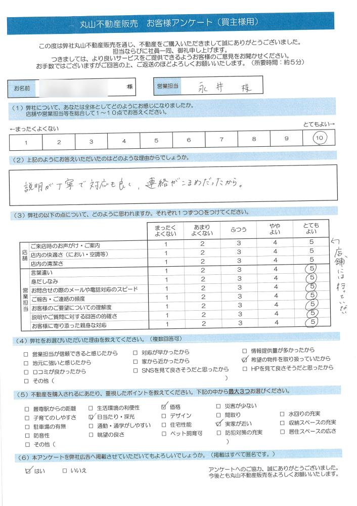 この度はご契約いただき、誠にありがとうございました。ご契約からお引渡しまでスムーズにお手続きをいただき、ありがとうございました。完成を楽しみにしております。