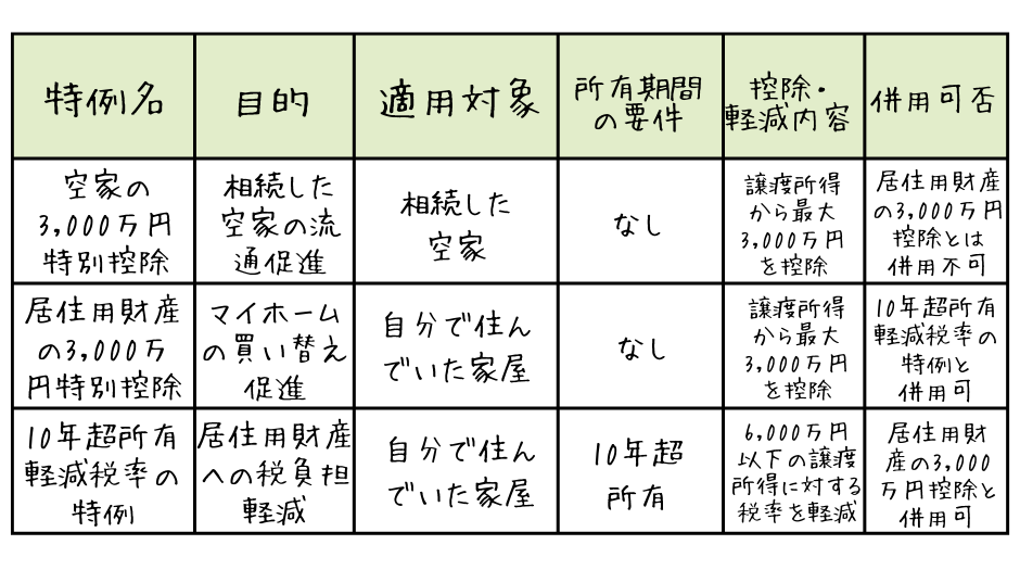 自身が住んでいた家屋やその敷地を売却した際に、譲渡所得から最大3,000万円を控除できる特例です。