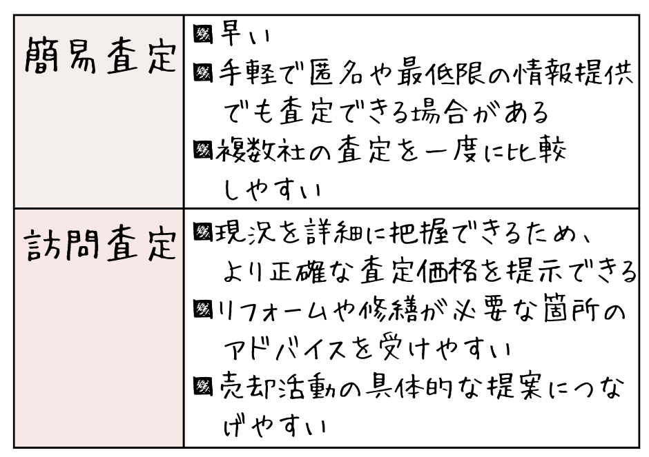▼「簡易査定」と「訪問査定」それぞれのメリットについて