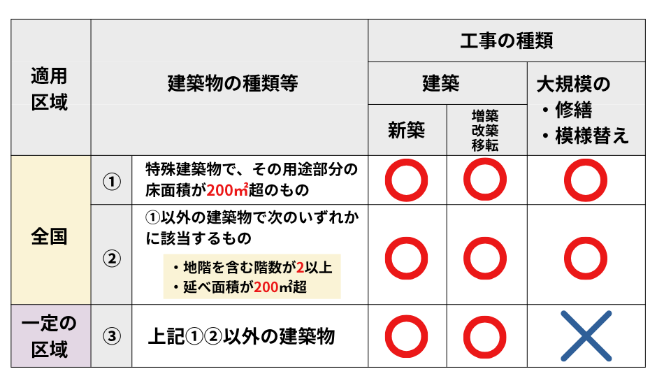 これにより、これらの建物で「大規模の修繕」または「大規模の模様替」を行う場合は、新たに建築確認申請と審査が必要になりました。